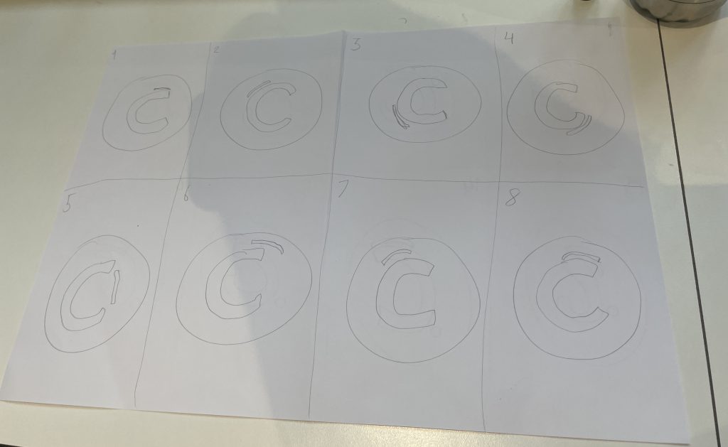 Vi fik et kort gennemgang af hvad vi skulle lave og hvordan vi gjorde, derfor gik Marie og jeg ud for at lave det sammen. Vi skulle tegen et storyboard for hvordan animationen skulle foregår. Jeg lavede 16 rammer og tegnede ved hvert punkt hvordan jeg ønskede mit logo skulle bevæge sig.