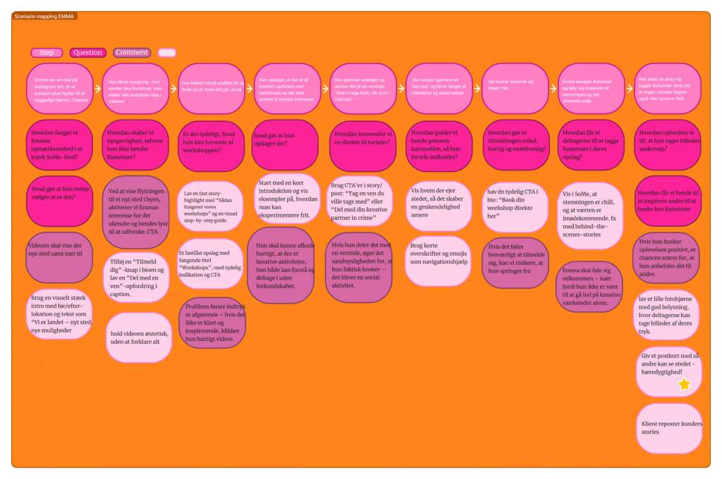 Emma, derimod, repræsenterer den målgruppe, Kunstnær gerne vil tiltrække: yngre voksne, der interesserer sig for kreative fællesskaber, men som endnu ikke har fundet vej til stedet. Hun opdager nye steder gennem sociale medier – især Instagram og motiveres af kort, visuelt og inspirerende indhold, som føles autentisk og let tilgængeligt.