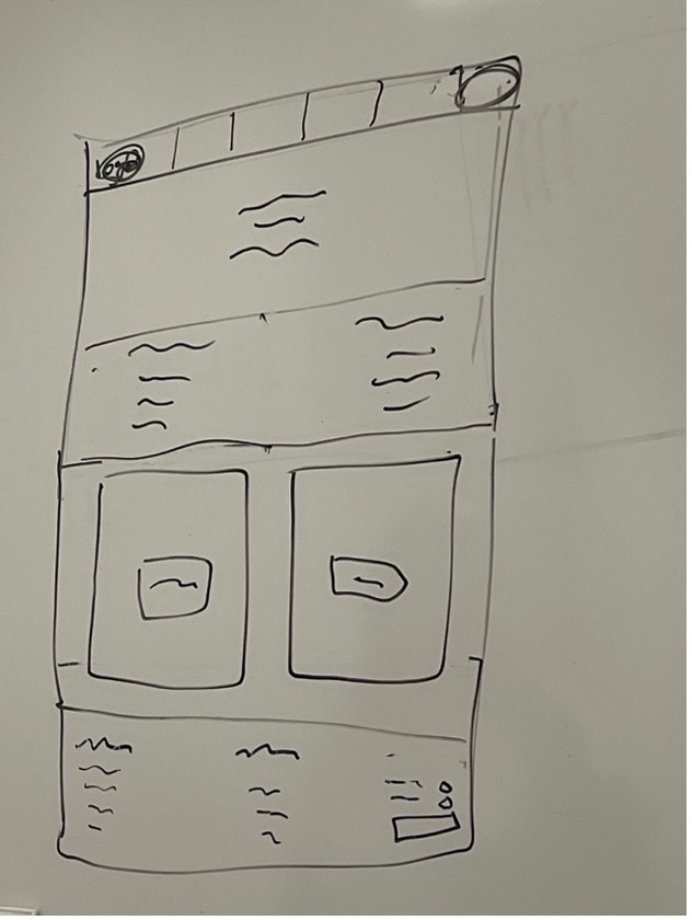 Dernæst gik vi igang med en at tegne en lo-fi wireframe af alle siderne. Vi havde til opgave at re-designe forsiden og selvvalgte undersider, men vi ville gerne have en hel hjemmeside hvor alle siderne blev lavet, så vi tegnede alle sider (eksemplerne viser henholdsvis startsiden, menu/restaurant og om os);