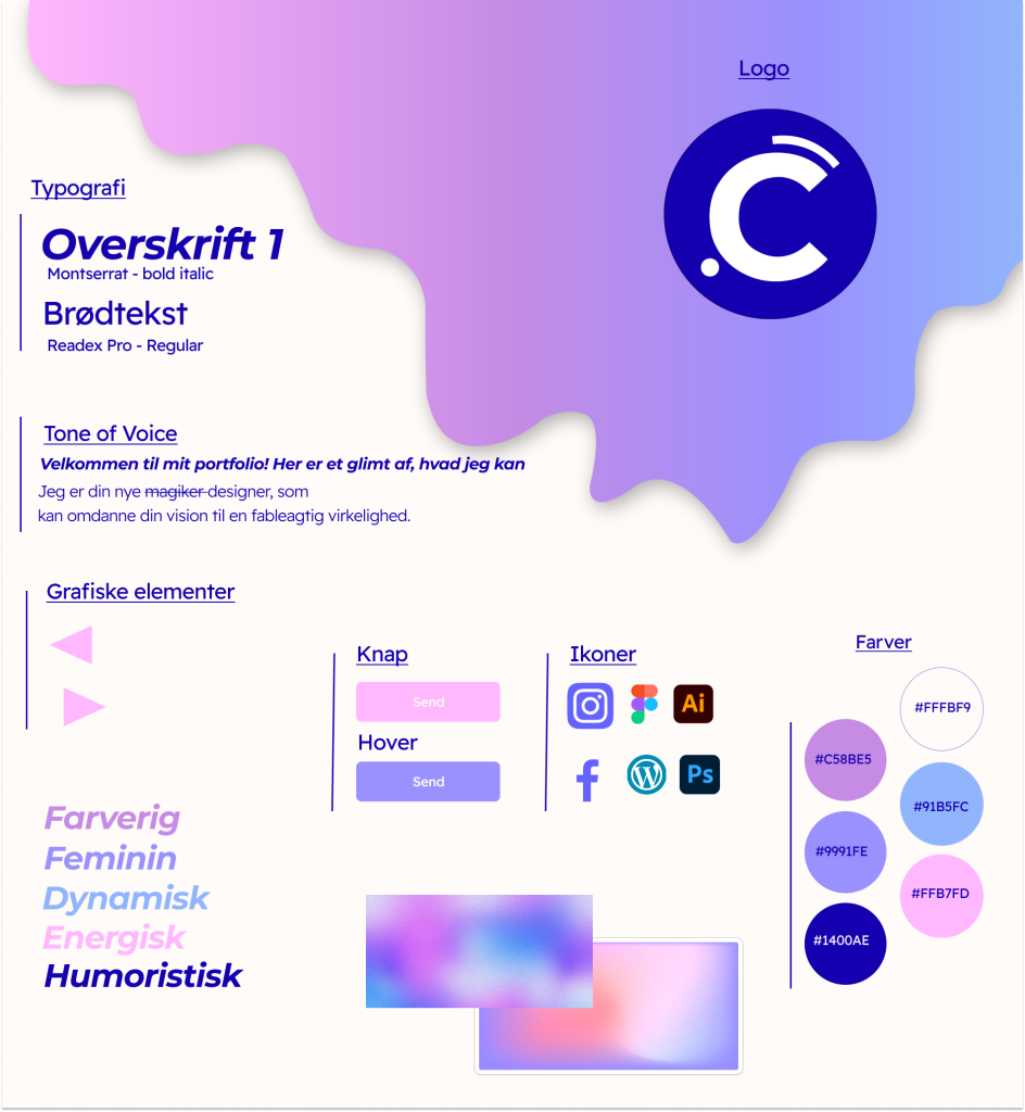 Jeg valgte at gå med mit eget brand fordi jeg gerne ville designe min portfolio for at fremhæve min personlige stil og tilgang. Min målgruppe er nyopstartede virksomheder, der ønsker at øge deres synlighed og vækst. De søger en kreativ partner til at designe en farverig og humoristisk visuel identitet, samt effektive SoMe-strategier. Målet er at skabe et stærkt brand, der skiller sig ud og opbygger varige forbindelser med deres kunder.